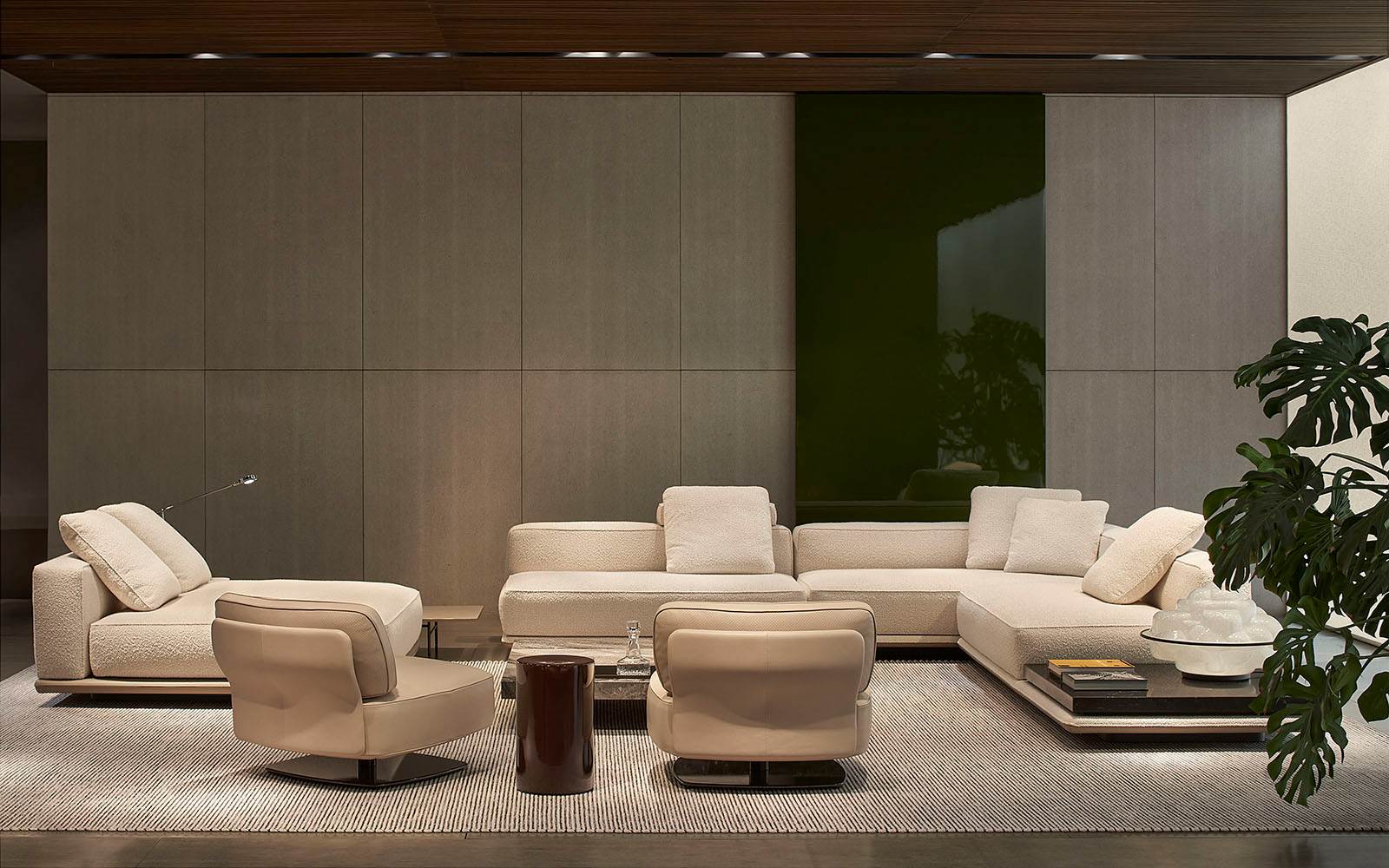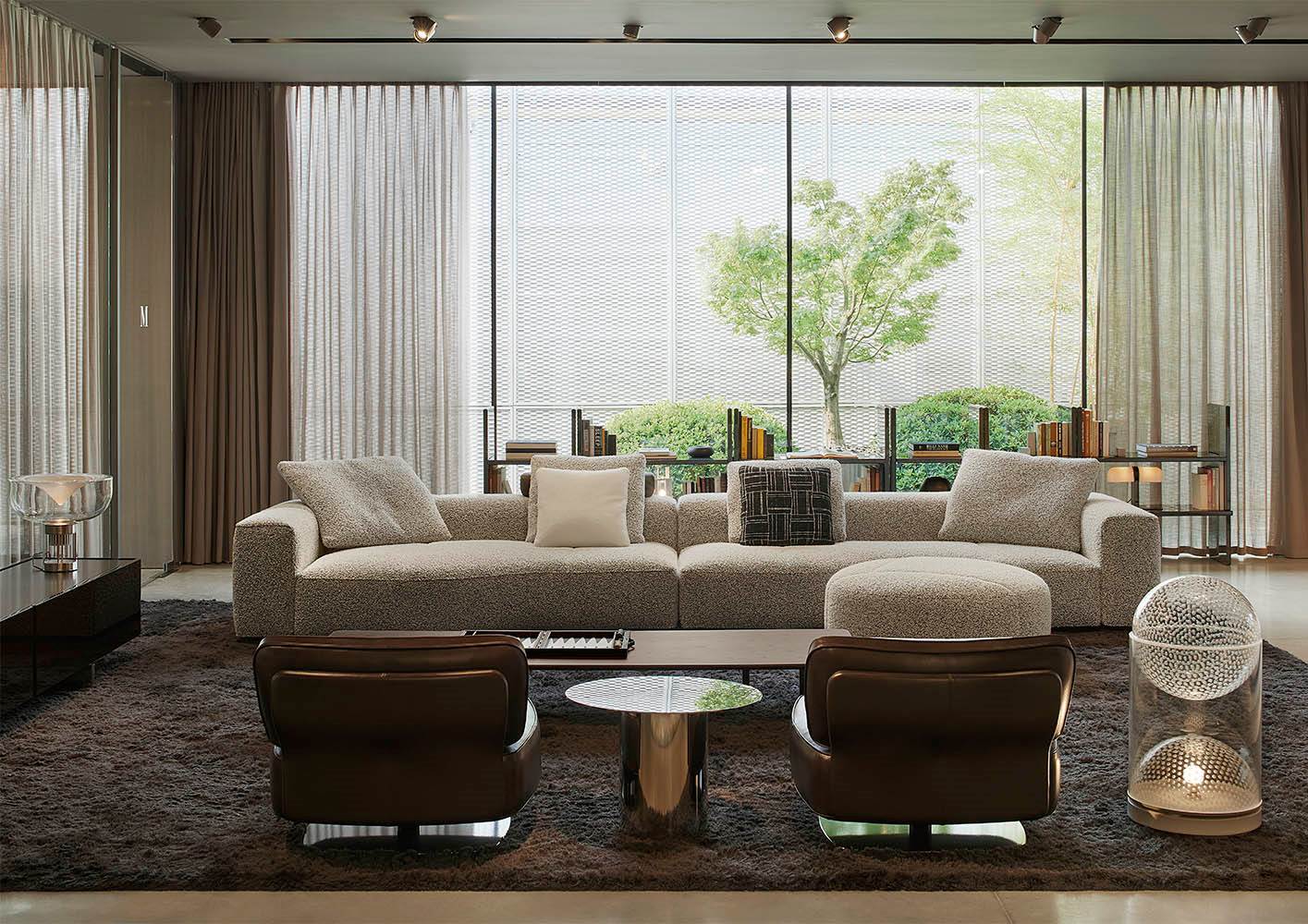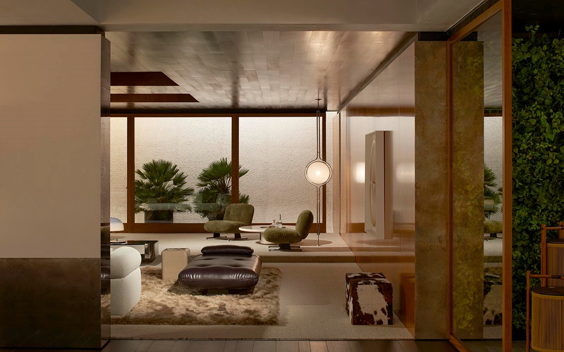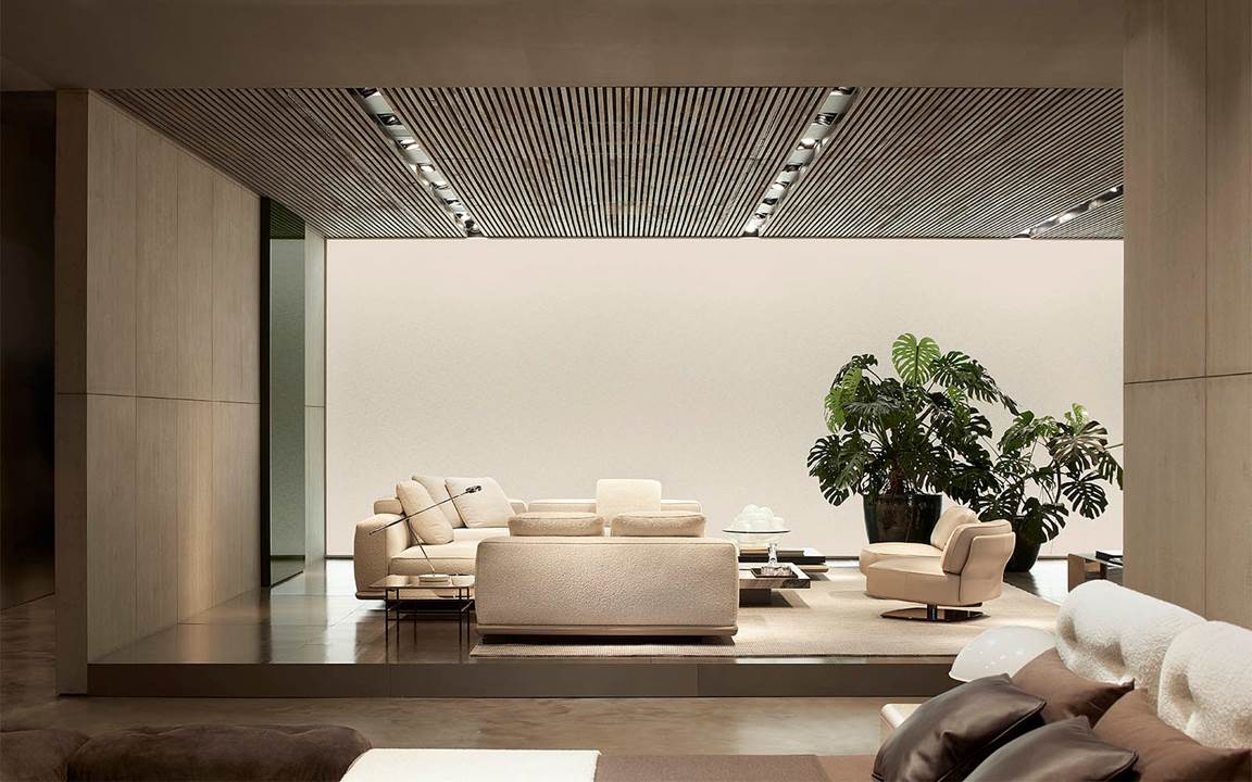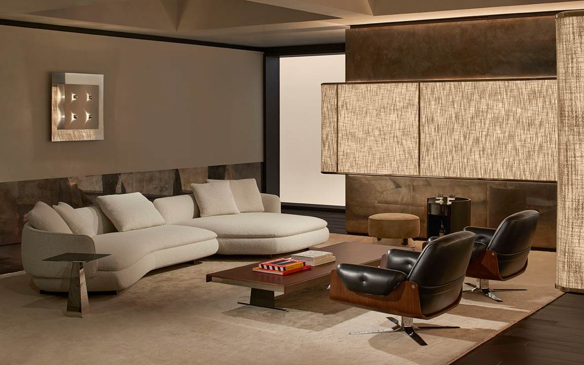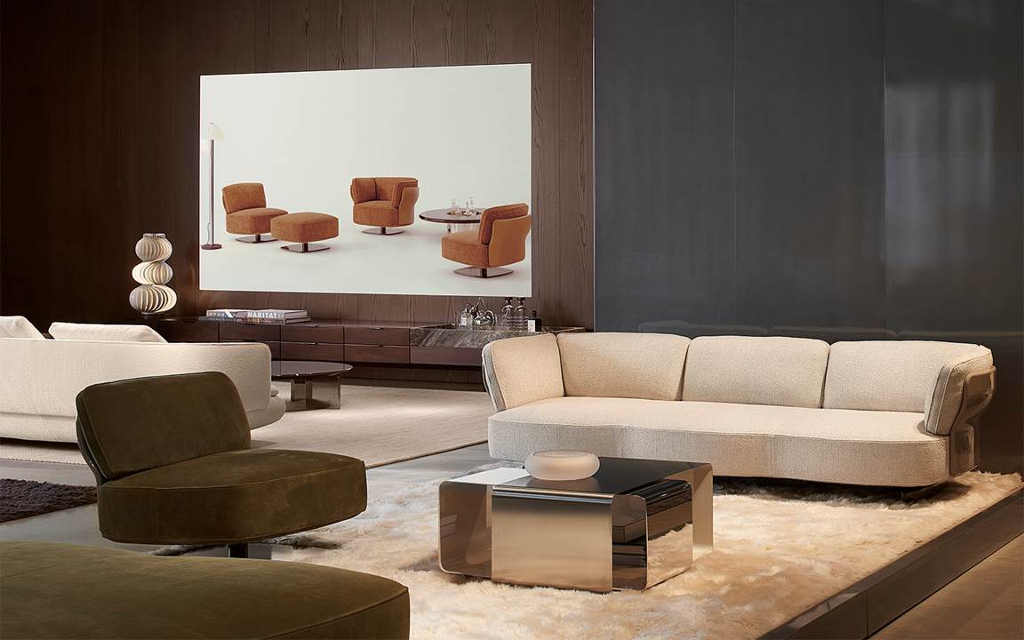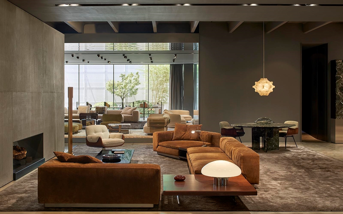 A cura di Minotti Studio, l’intera area di 1000mq si sviluppa come un unico, armonioso scenario che invita ad immergersi in una serie di eleganti ambientazioni living, dining e notte, evocando le suggestioni di ambienti residenziali e Hospitality ideali.