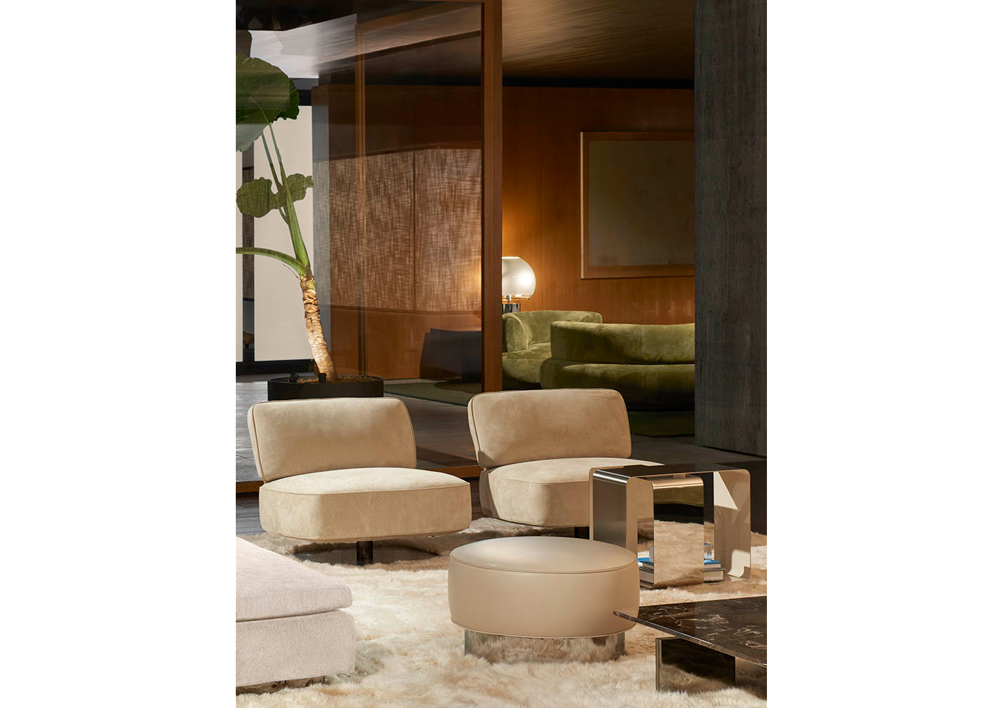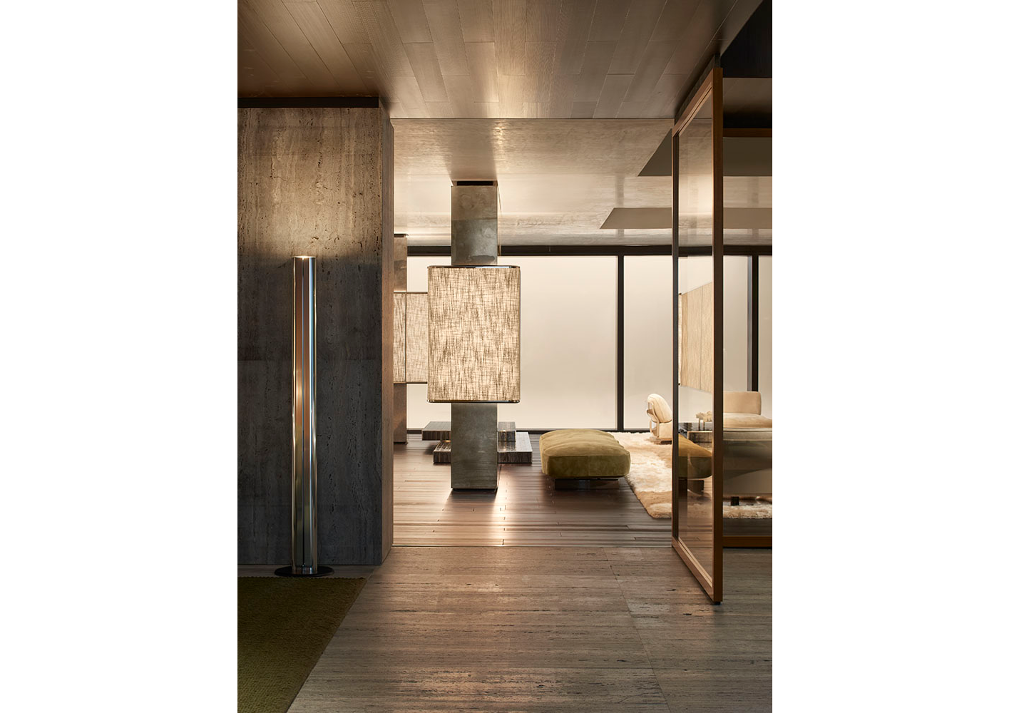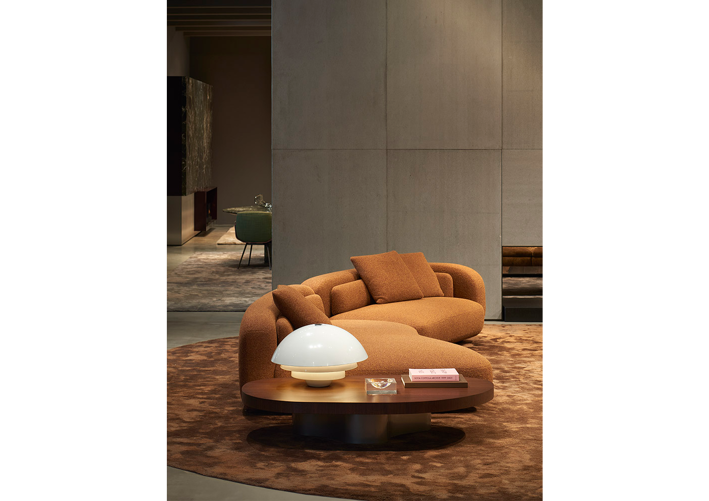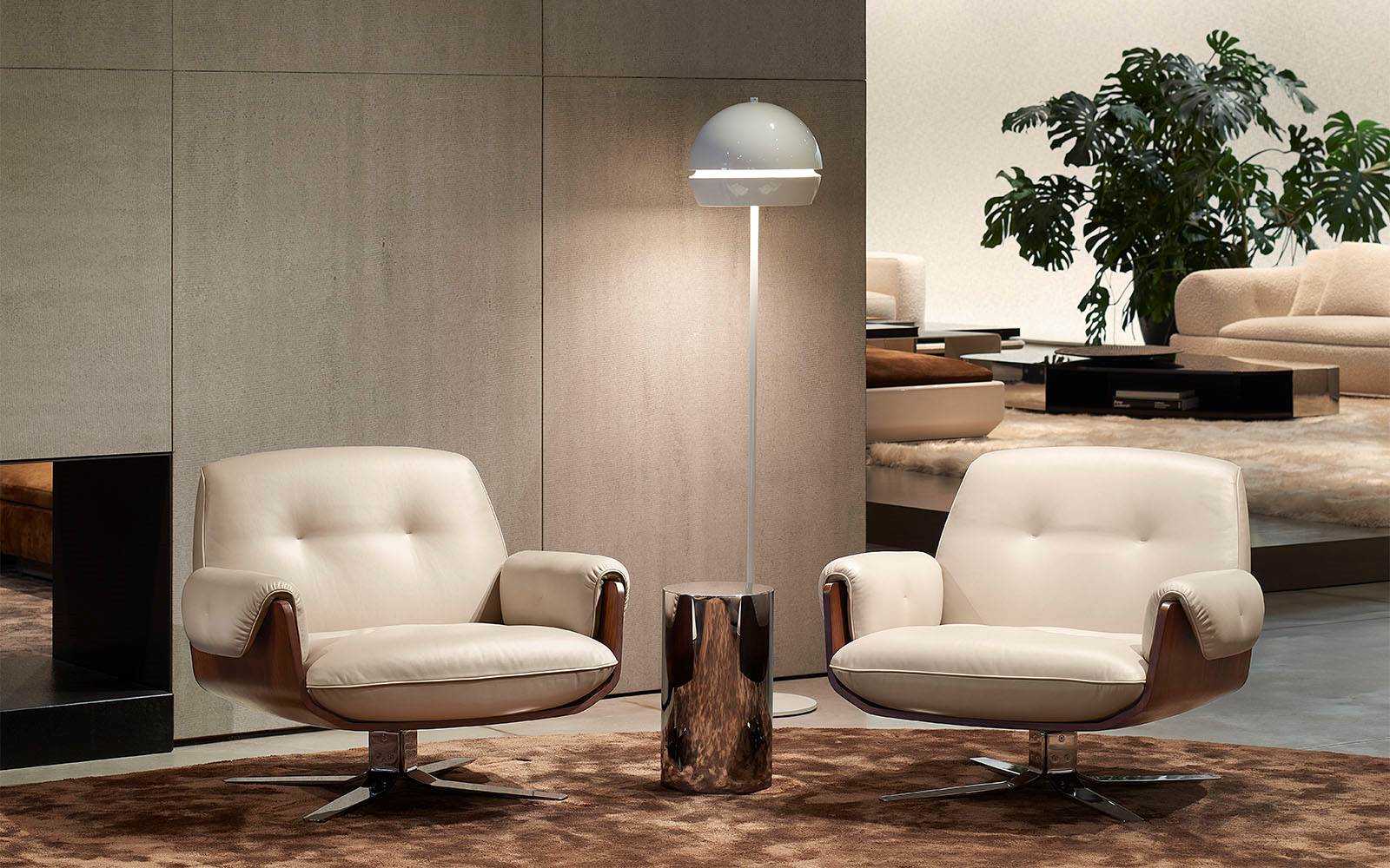 A cura di Minotti Studio, l’intera area di 1000mq si sviluppa come un unico, armonioso scenario che invita ad immergersi in una serie di eleganti ambientazioni living, dining e notte, evocando le suggestioni di ambienti residenziali e Hospitality ideali.