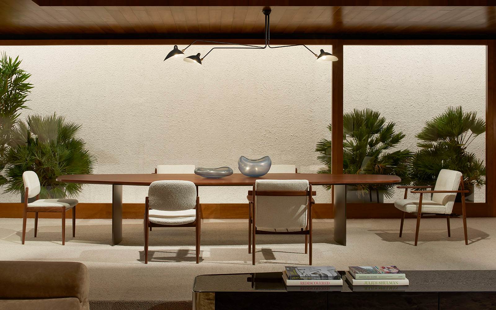 Tra superfici in noce Tanganica, pietra Travertino, gesso e acciaio nuvolato, l’intero progetto rappresenta una reinterpretazione contemporanea dell’abitare, che mette in risalto le recenti proposte d’arredo indoor e outdoor.