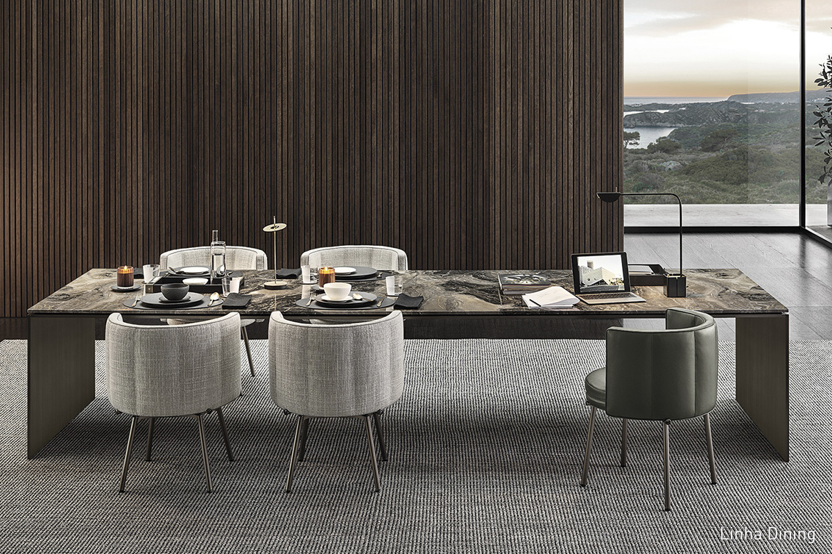 For the subsequent collections, Marcio Kogan further strengthened his creative partnership with Minotti by proposing, for the first time, several indoor designs, such as the Daiki armchairs, the Boteco family of sideboards and the Linha tables and coffee tables.