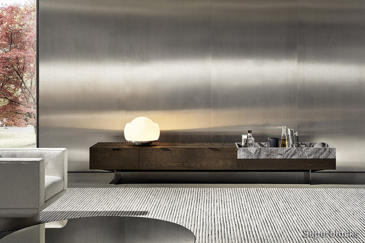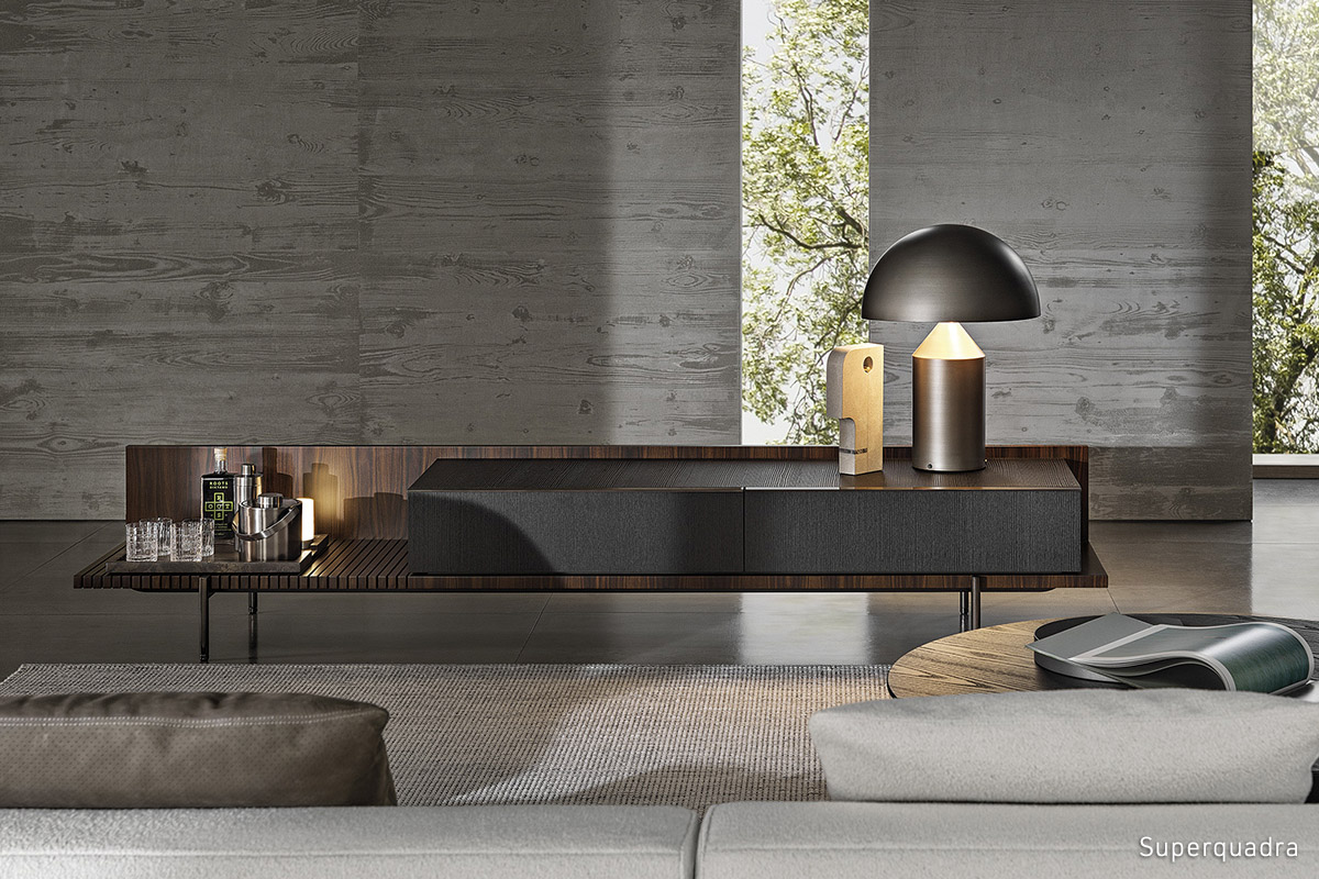 The year 2022 saw the continuation of the research into geometry and the relationship between forms and materials with the Horizonte seating system, which evolved in 2023 into the Horizonte Bed project, accompanied by the Superblocks series of storage elements: straight lines and squared volumes that make each furnishing piece a small piece of architecture.