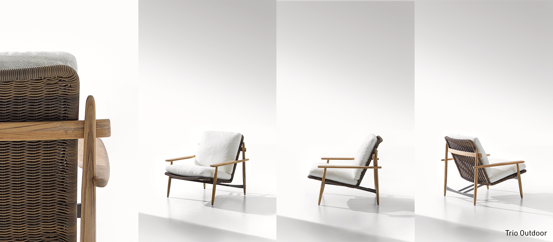 <p>The skilful and combined use of different materials also characterises the <strong>Trio</strong> armchair, designed by Marcio Kogan for the 2024 Collection, from which the <strong>Trio Outdoor </strong>version for open-air spaces also takes shape.</p>