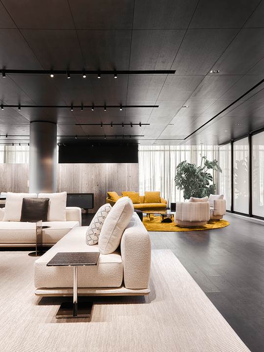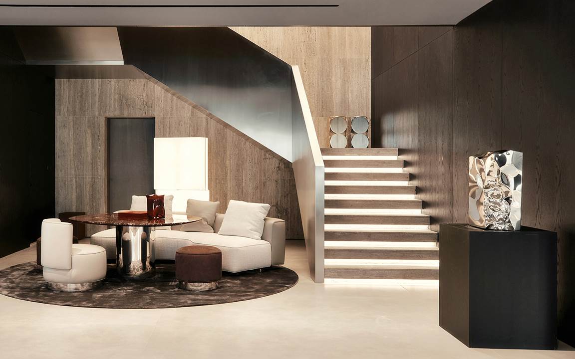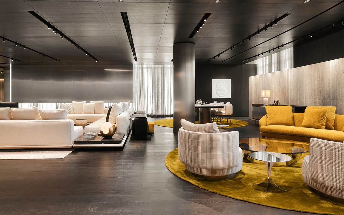 Ideato e realizzato da Minotti Studio, il progetto di interior design coniuga elementi originari dell’edificio con segni distintivi dello stile Minotti, in un percorso espositivo che si trasforma in una coinvolgente design experience.