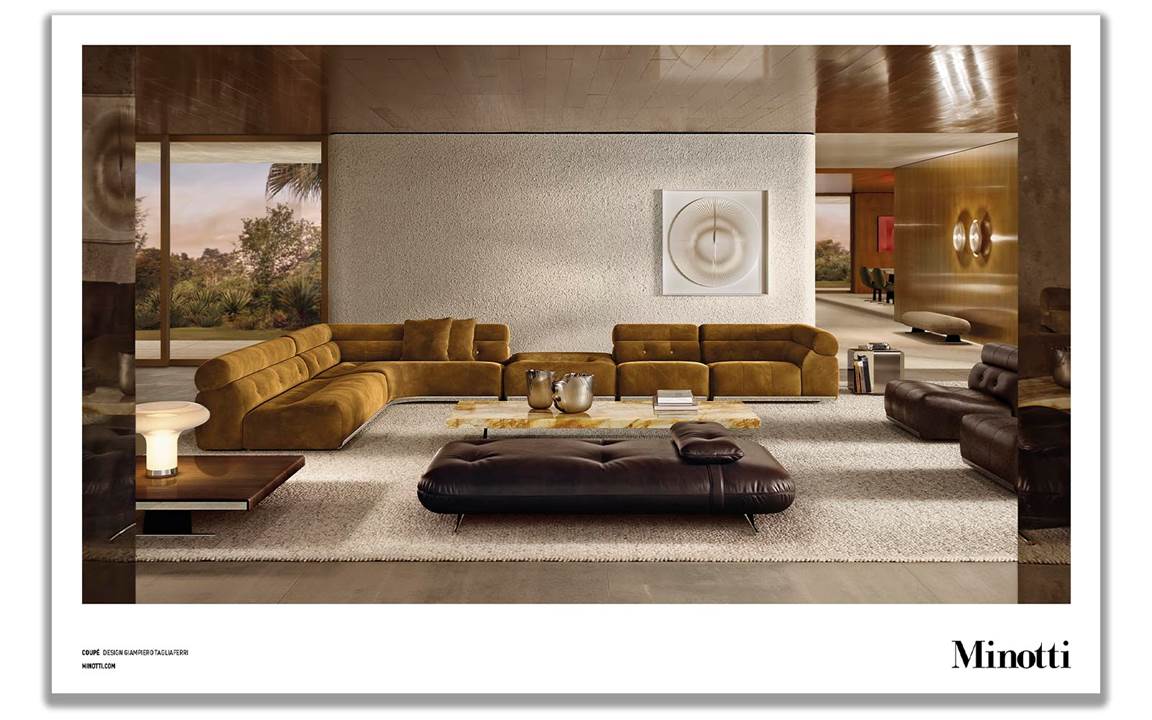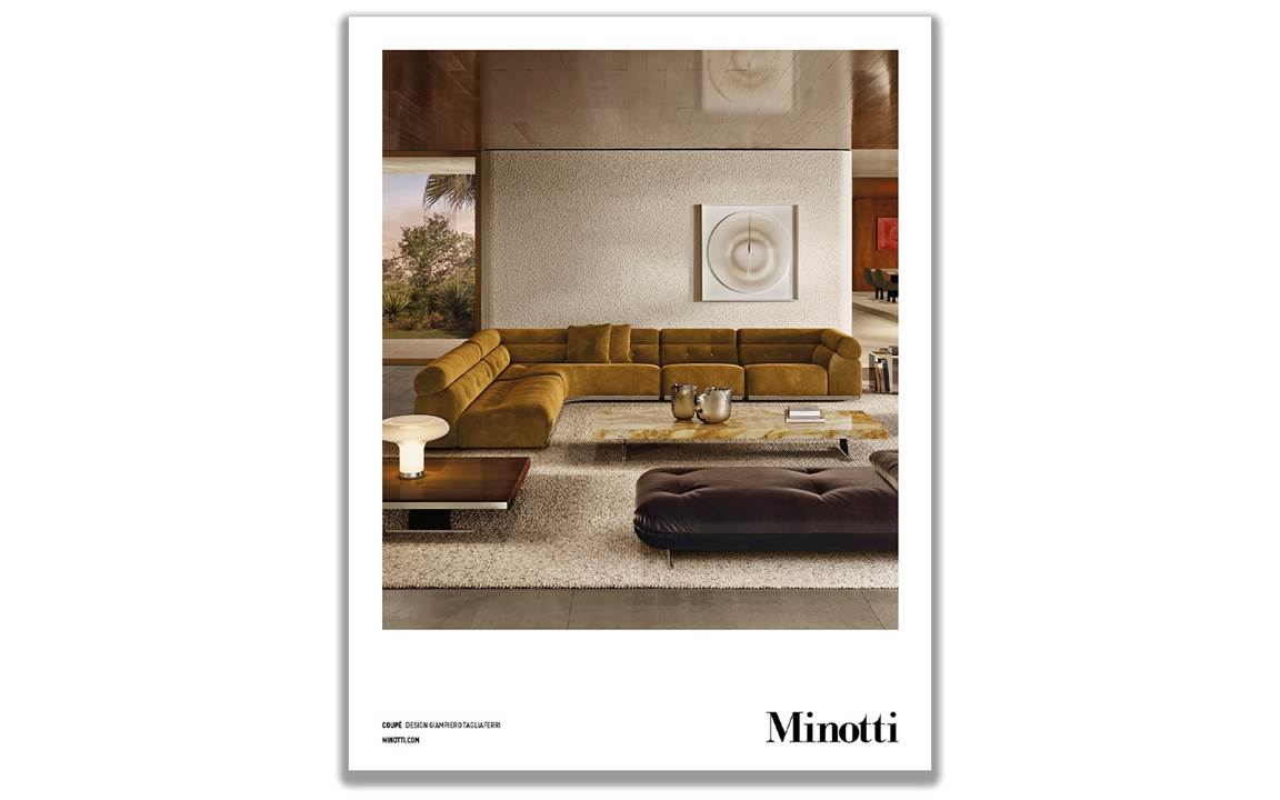 A photographic narrative conceived by Minotti Studio that captures the brand’s creative vision and the evolution of its design concept, brought to life through four evocative settings — each embodying a unique project and aesthetic sensibility. Harmoniously connected and deeply rooted in the brand’s values, the different atmospheres embody the Minotti lifestyle, aesthetic vision, and unmistakable craftsmanship know-how.